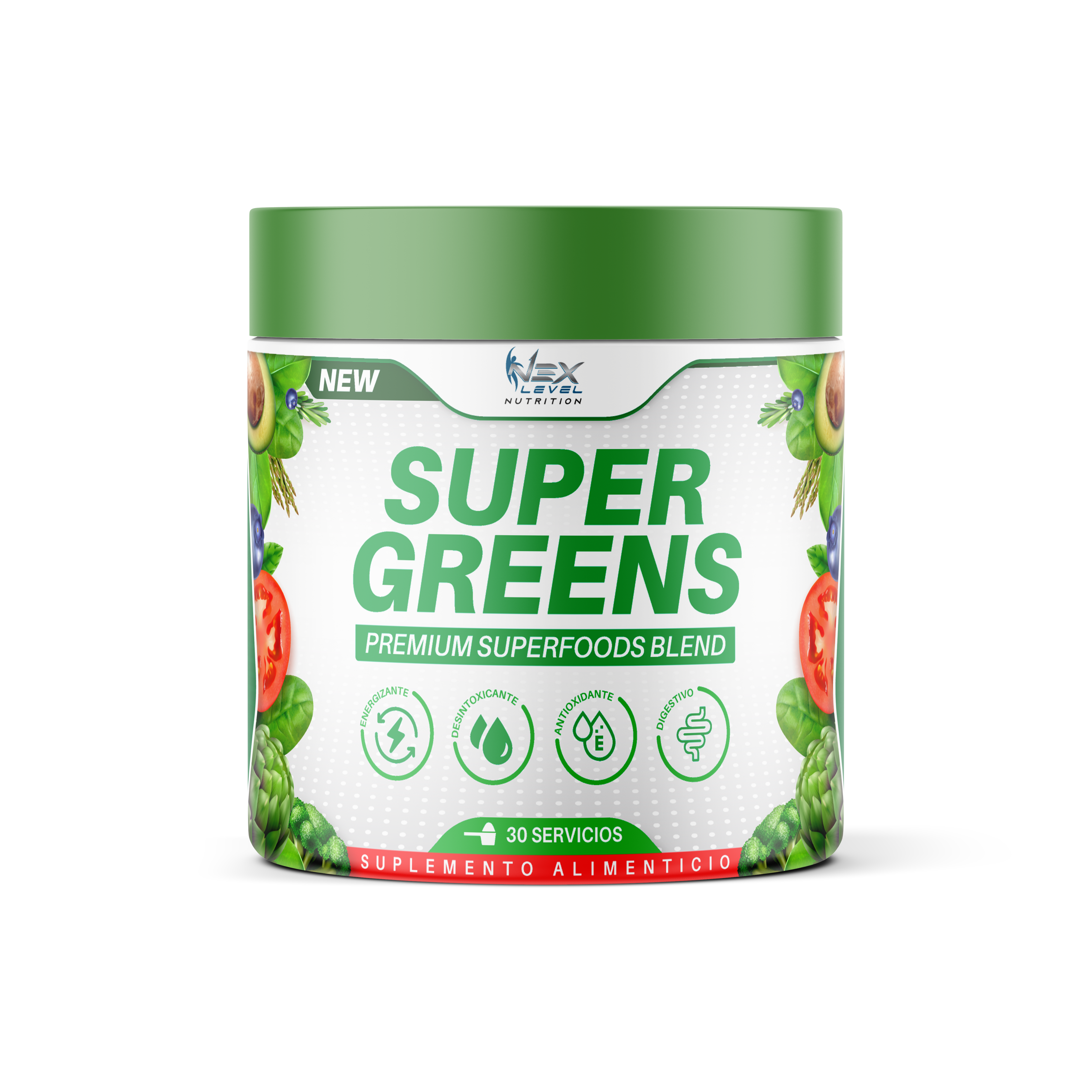SÚPER GREENS (Premium Superfoods Blend), es un producto especialmente preparado por nutricionistas y atletas profesionales. Polvo para diluir, su fórmula basada en nutrientes naturales mejora la digestión, reduce la hinchazón y mejora la inmunidad. Una cucharada diaria mezclada con cualquier líquido, favorece el aporte de fitonutrientes, vitaminas y minerales. Con gran poder antioxidante, refuerza el sistema inmune y aumenta el equilibrio del organismo, por la mala alimentación.